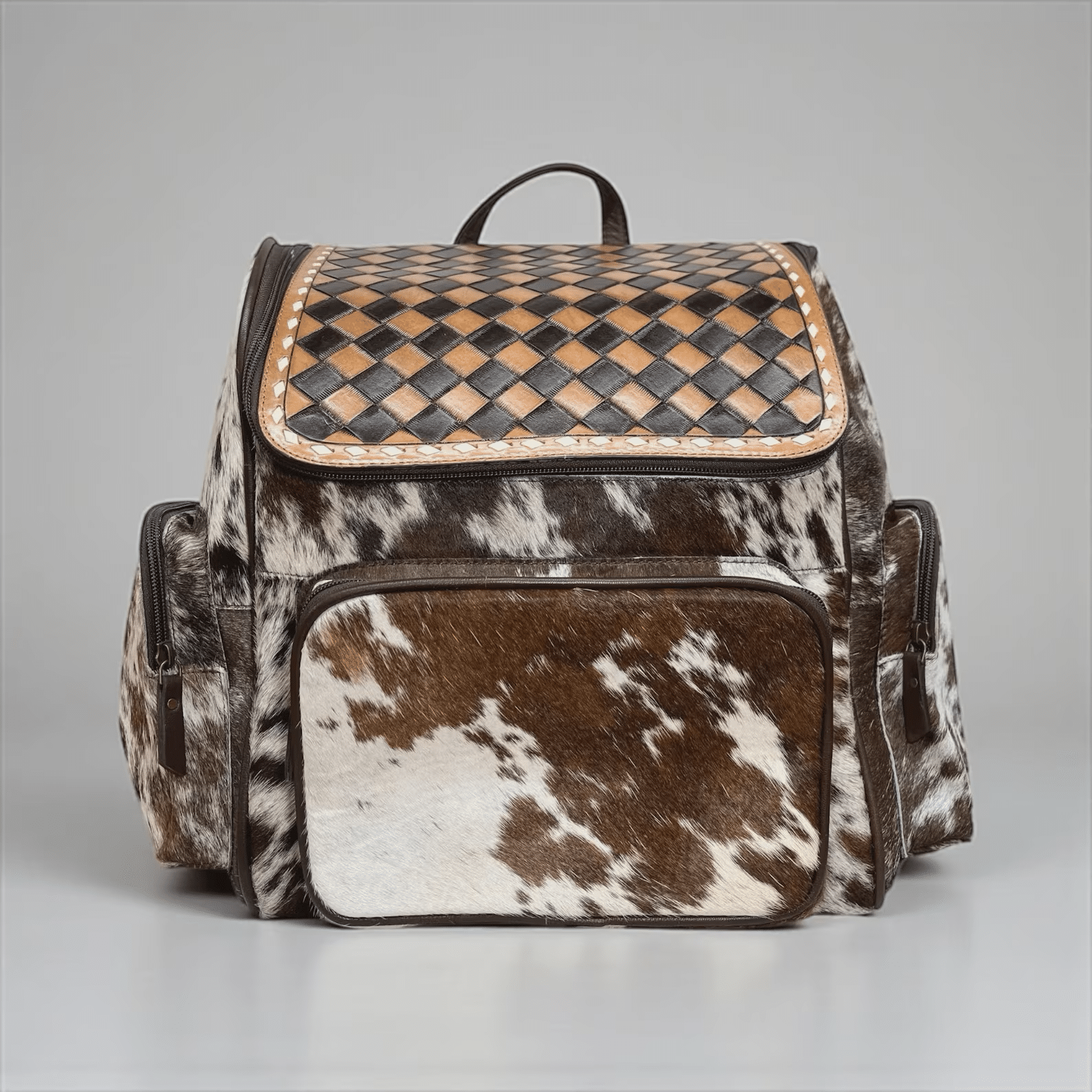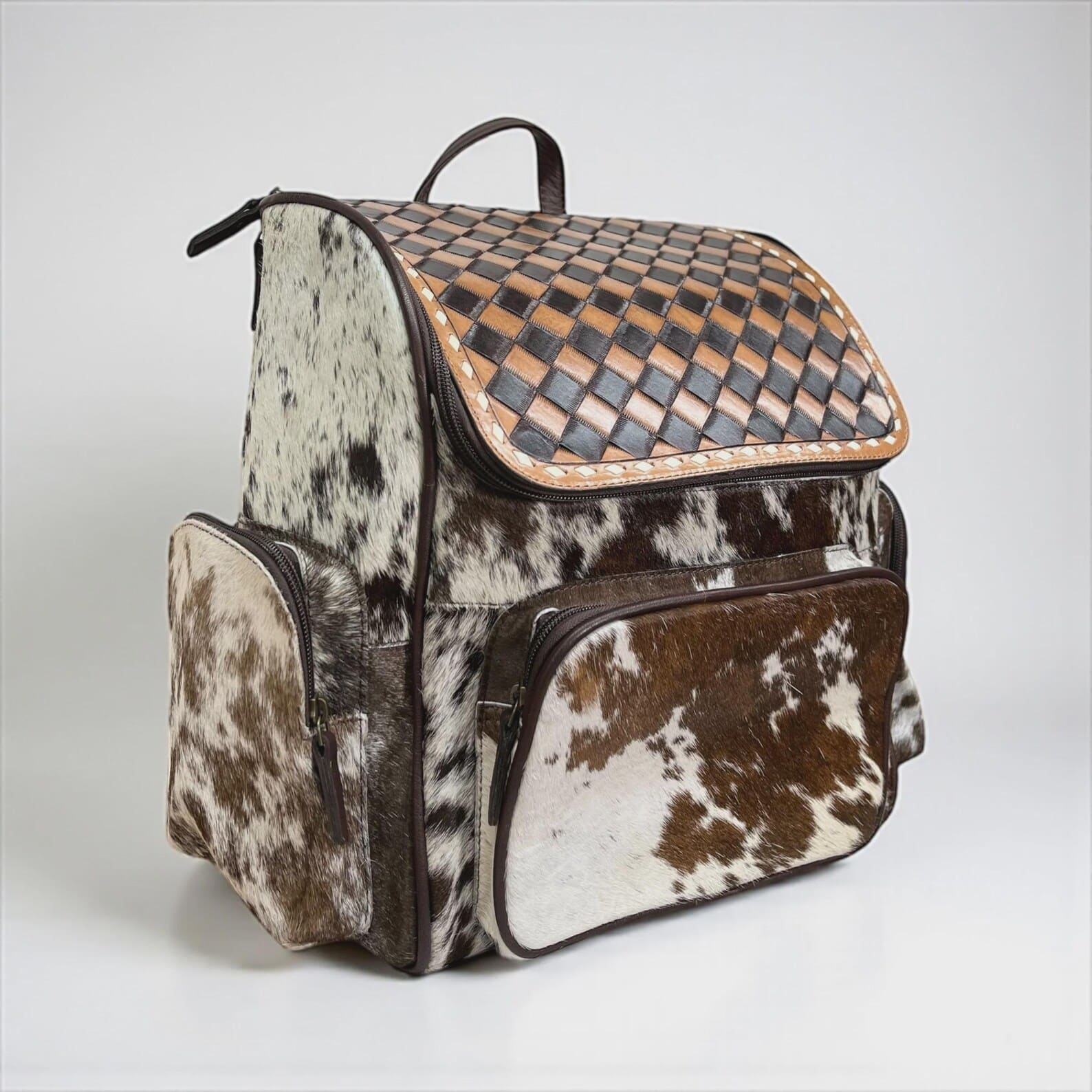 Brown checker tooled & cowhide backpack – Hair on Hide Unisex Western Backpack