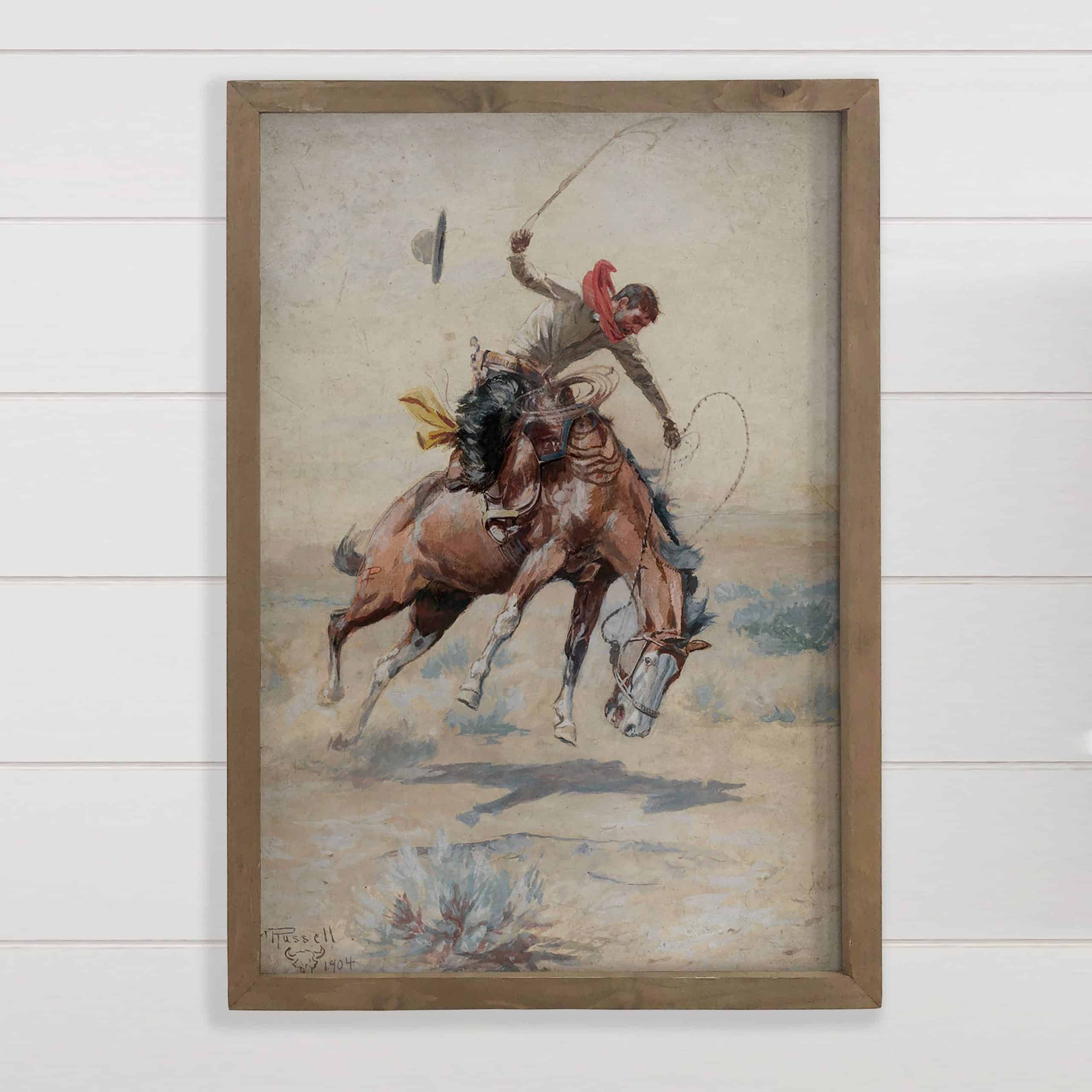 Bucking Cowboy – Western Canvas Art – Wood Framed Wall Art: 12×18″ Medium Canvas Art with Thick Wood Frame