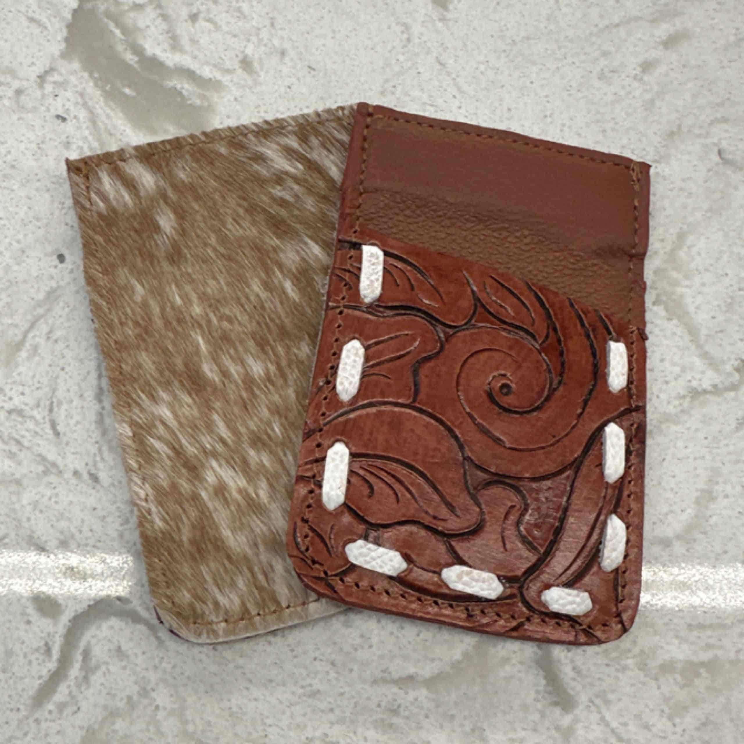 Made from durable cowhide and leather, this card holder features a compact design that combines style and practicality for everyday use.