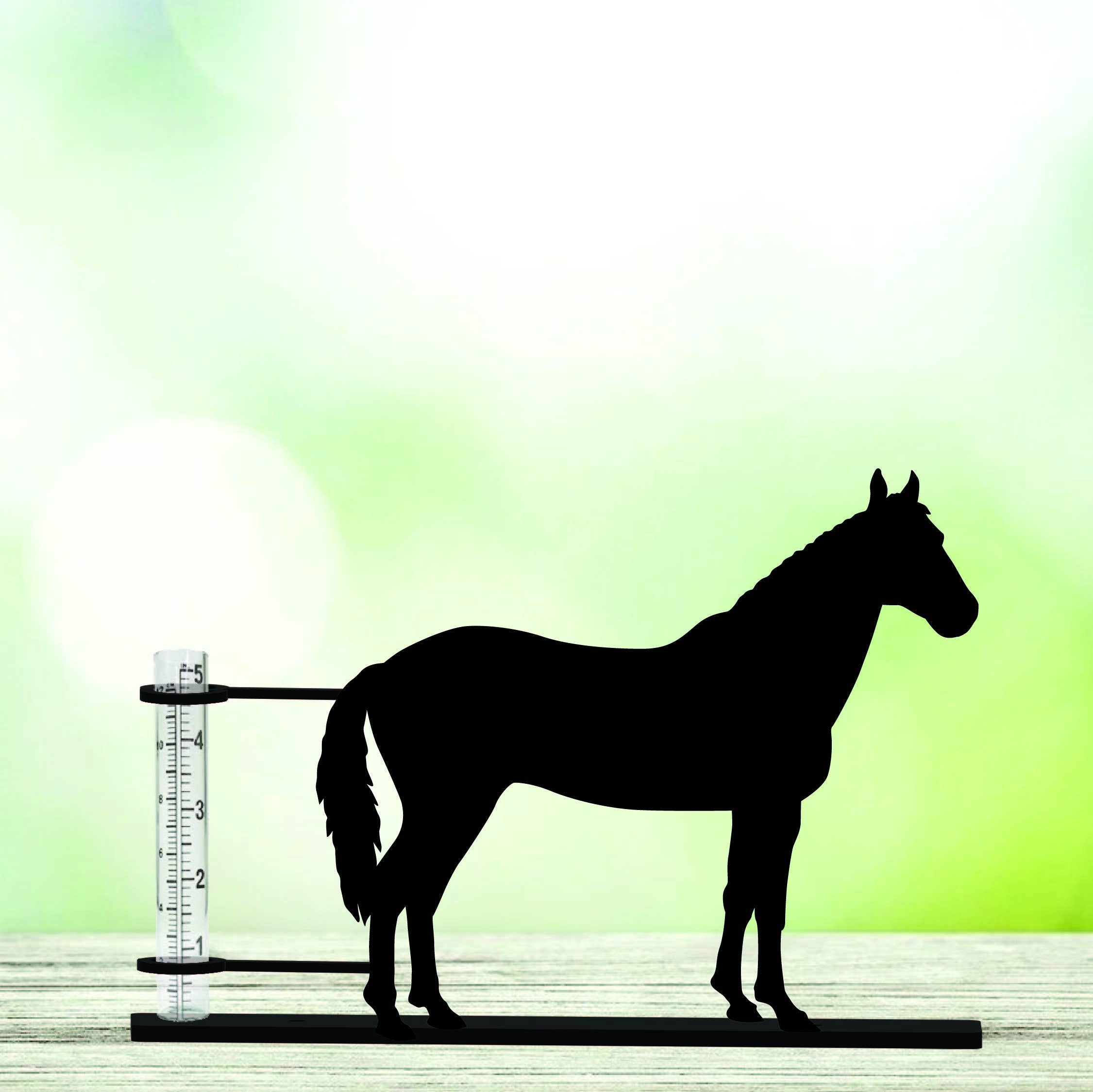 Horse Rain Gauge” Mountable Rain Gauge made from 14-gauge steel and powder coated Matte Black. Powder coating ensures the gauge will last rust free for you to enjoy for years to come.