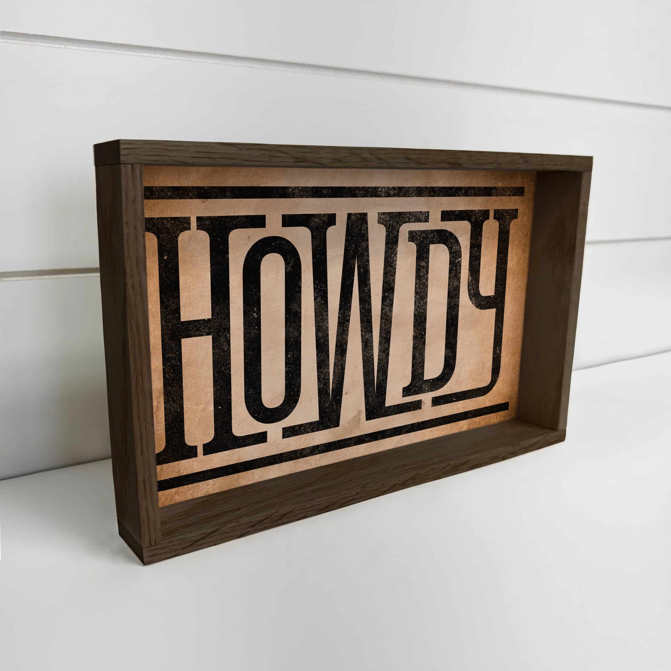 Howdy Typography – Western Word Canvas Art – Wood Framed Art: 6×10″ Mini Canvas Art with Wood Box Frame