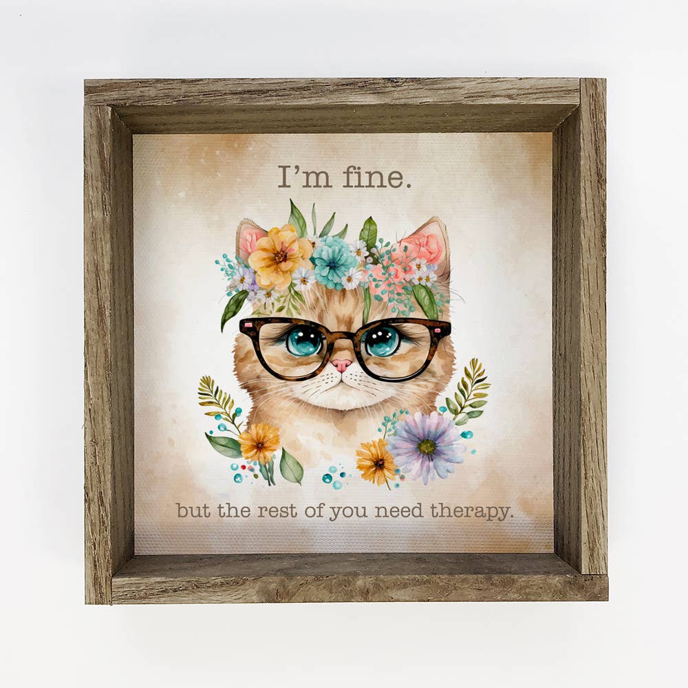 Indulge in the quirky charm of this Cat painting, featuring a cute feline with vibrant turquoise eyes, black-rimmed glasses, and a lively flower crown. The scene is framed by an assortment of colorful flowers underneath the cat, adding an extra touch of playfulness. The phrase completes the artwork, making it a perfect addition to spaces where a dose of humor is welcomed.