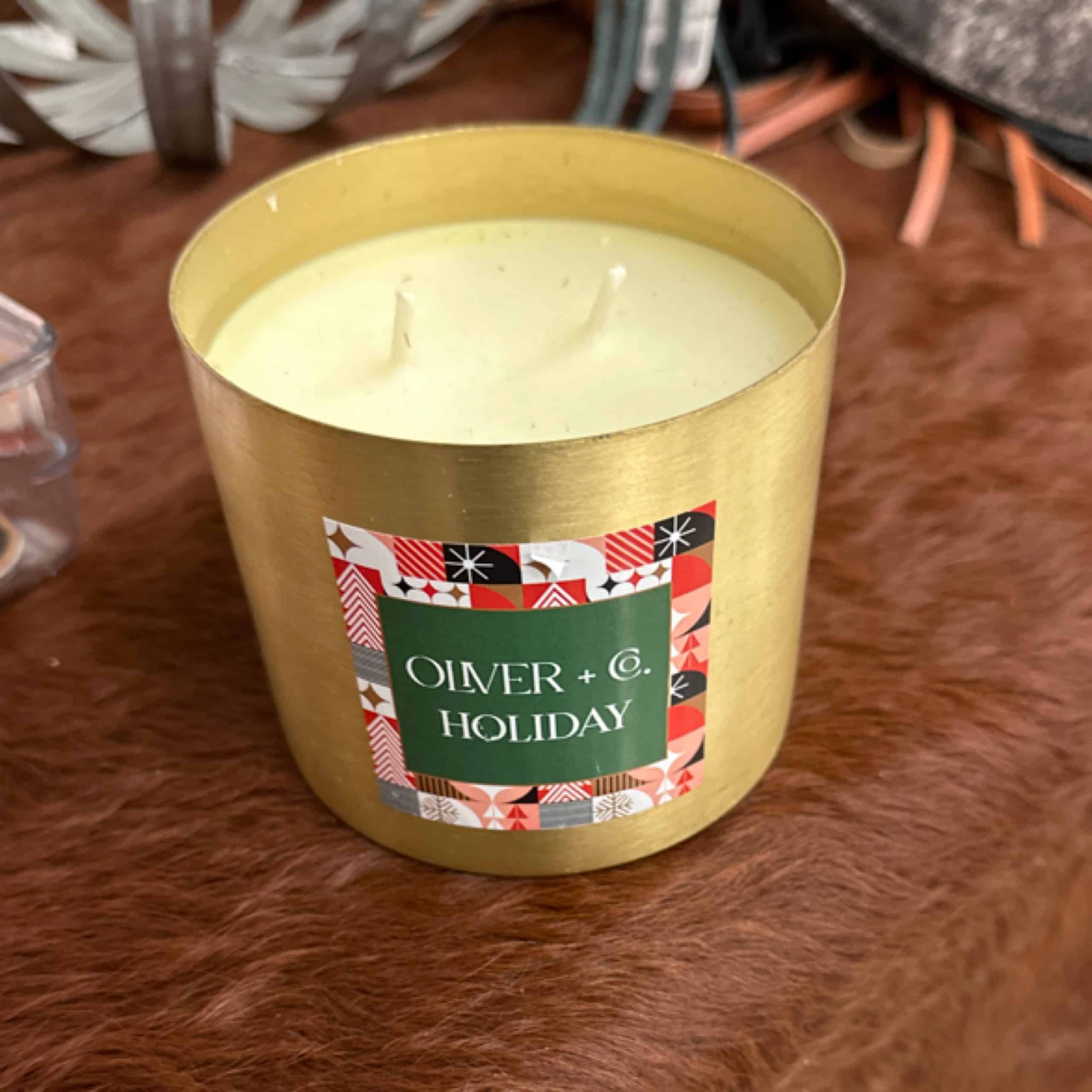 The Oliver + Company Holiday Candle features a festive scent that captures the spirit of the season, paired with a handcrafted design. Enjoy its long-lasting burn time, perfect for adding warmth and cheer to your holiday celebrations.