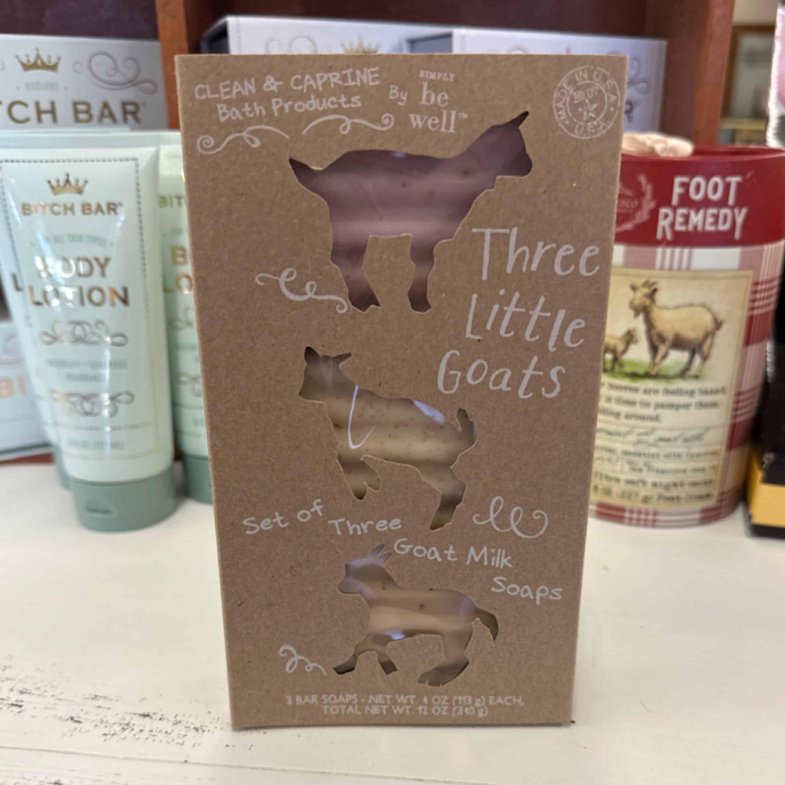 The Simply Be Well Three Little Goats Goat Milk Soap Gift Set features three nourishing bars infused with a gentle goat milk formula. Enjoy a luxurious lather that leaves your skin feeling soft and moisturized with every use.