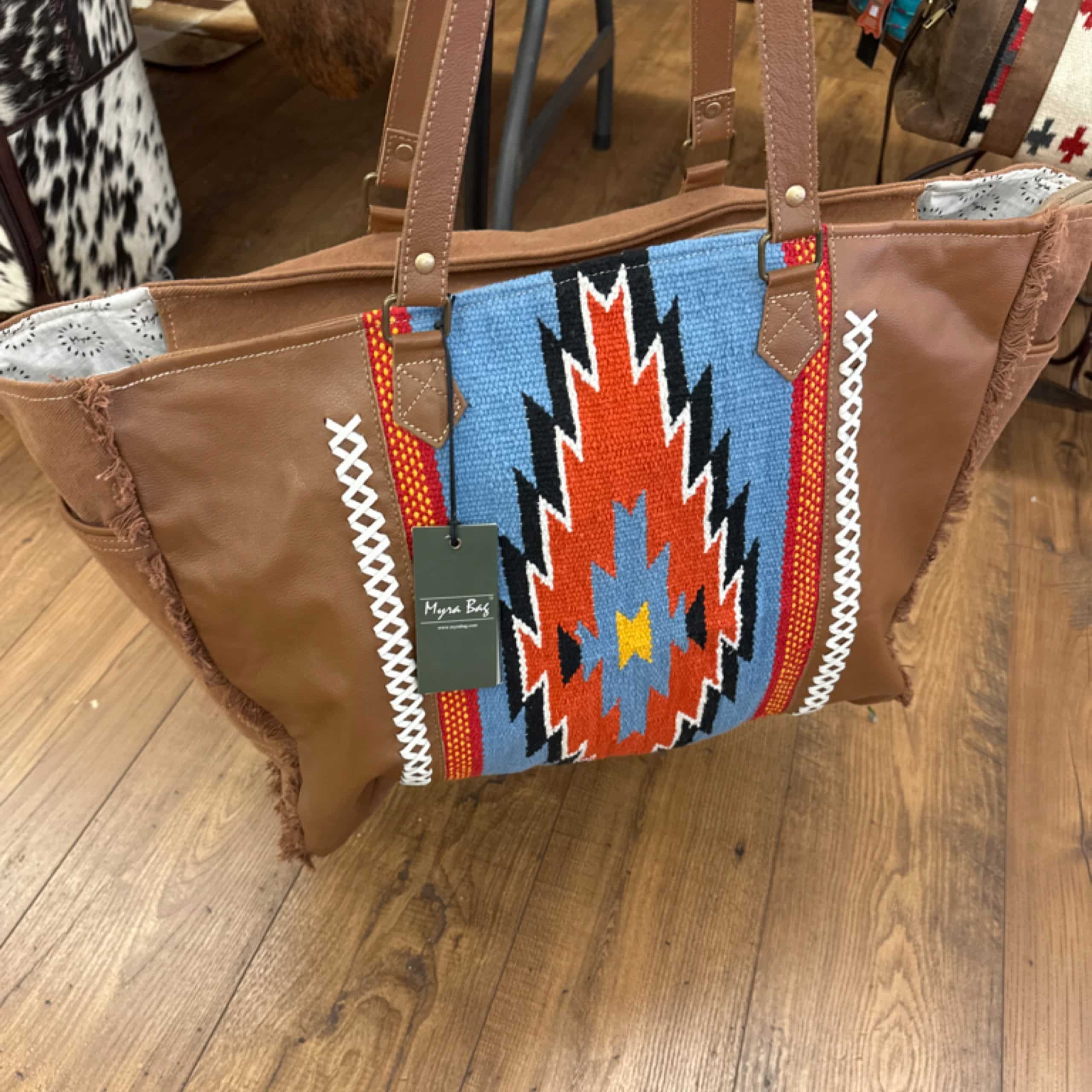 The Wagon Trails Weekender Bag in Warm Chocolate features durable materials and a spacious design, making it a reliable choice for travel. Its rich, stylish color adds a timeless appeal to your journeys.