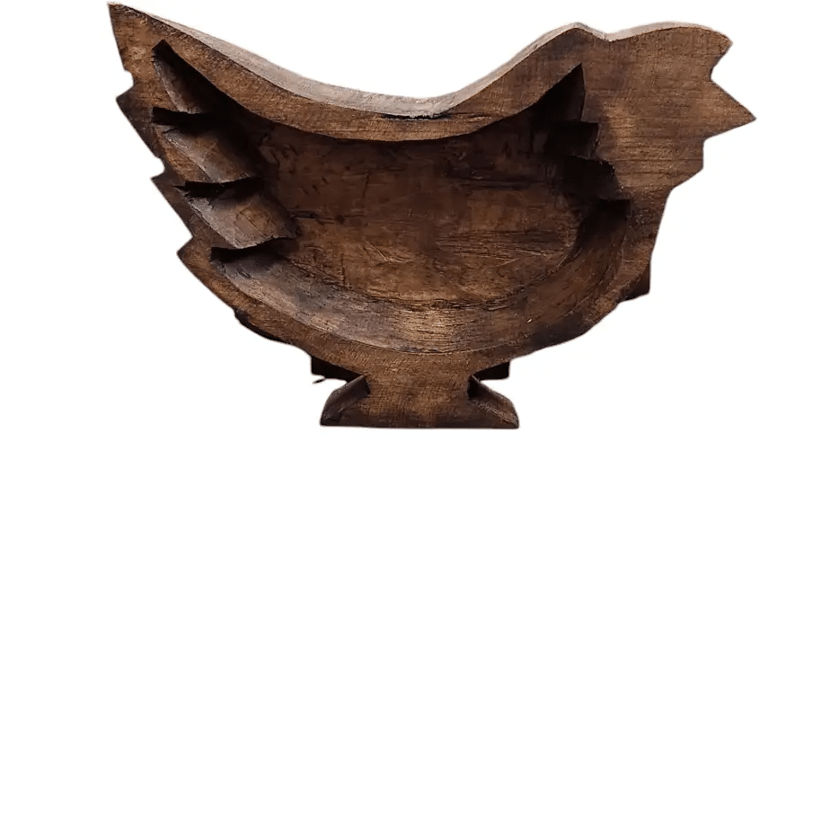 This handcrafted wood chicken showcases a unique design made from sustainable materials, combining charm and eco-friendly craftsmanship. A perfect decorative piece for any space seeking originality and quality.